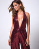 Amber Wide Leg Jumpsuit in Mini Sequin Burgundy