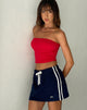 In navy, this Dheca skirt features an elasticated waistband, mini fit and side stripe detail with bow embellishment on the front.