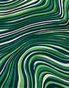 The trending ripple print is back in a green hue. The Ima skirt, in the 70's print, features a high waist mini fit. Complete the look with our Ryals Top in rib white.