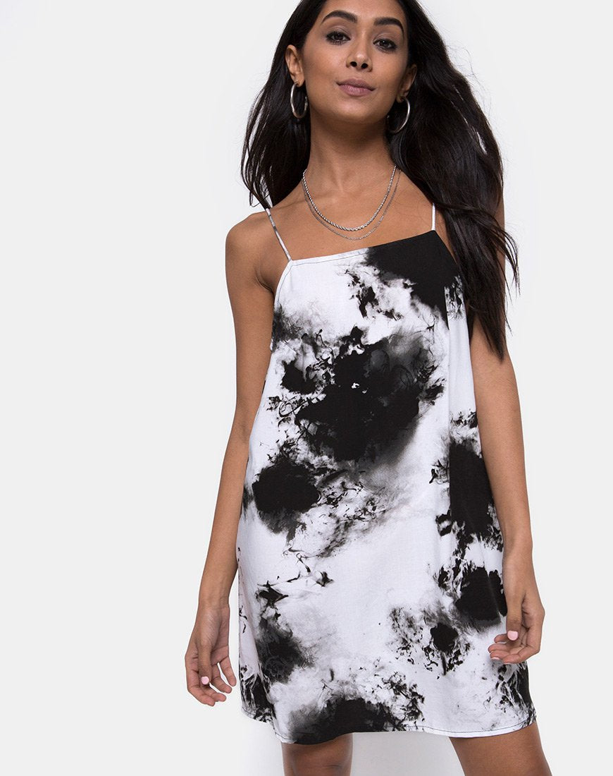 Sagha Slip Dress in Mono Tie Dye Black and White