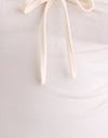 In a dark brown cupro fabric, the Saiba top displays cap sleeves with added bow that ties on the neckline. Paired with our Parallel jeans.