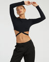 Our Seojun is the basic you need this summer. In black lycra, it features a crew neck, long sleeves and a cropped fit. Complete the fit with our Abba trousers in tailored black.