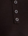 The Vibian top displays a short sleeve silhouette with a square neckline and a button up feature on the chest. Finished in a black jersey fabric. Pair with our denim skirt.